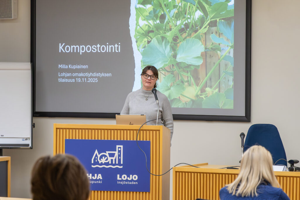 Ennen kuin päästiin tekemään tärkeitä päätöksiä syyskokouksen merkeissä, piti Vihdin kunnan ympäristötarkastaja Milla Kupiainen mielenkiintoisen luennon biojätteen kompostoinnista omakotikiinteistöissä.