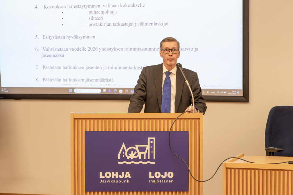 Kokousasioihin kuului yhdistyksen toimintasuunnitelman, talousarvion ja jäsenmaksusta päättämiset vuodelle 2026. Nämä hyväksyttiin yhdistyksen hallituksen esityksen mukaan. Jäsenmaksua ei koroteta, se on 25 euroa.